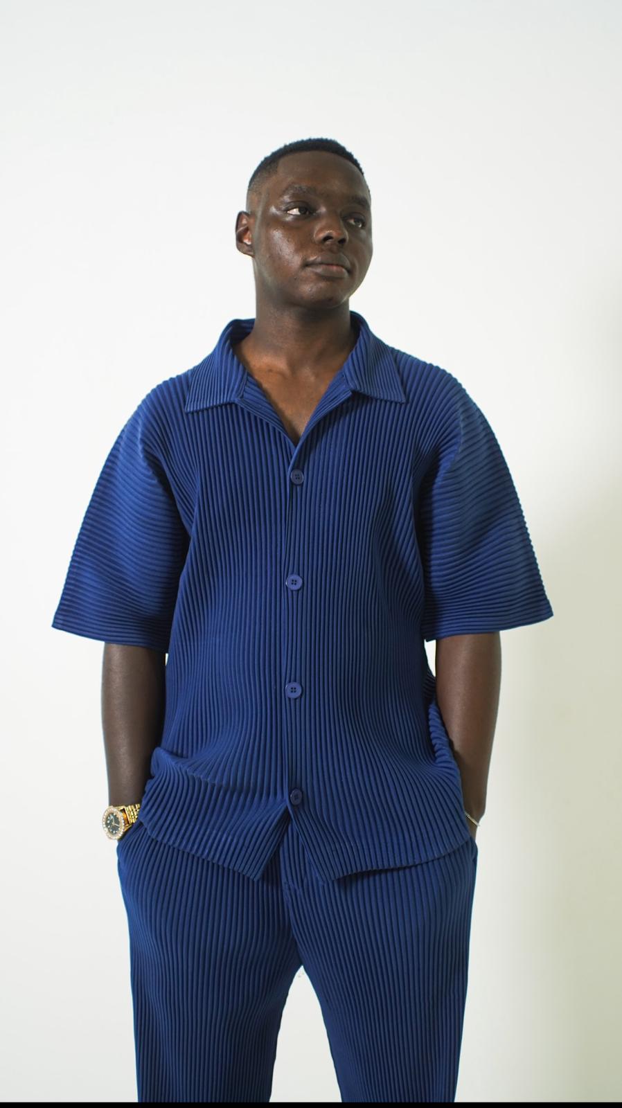 Expertly crafted with breathable fabric, these Dark Blue and dark brown Pleated Trousers and Tops redefine style and comfort. Designed with a relaxed fit, they are perfect for all-day wear, while the elasticated waistband ensures a secure and comfortable fit. A sleek tag on the side featuring Thehardway Clothing signature adds a touch of authenticity and premium appeal.